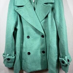 Avec Les Filles Women's Fuzzy Teal Green Peacoat Size S NEW