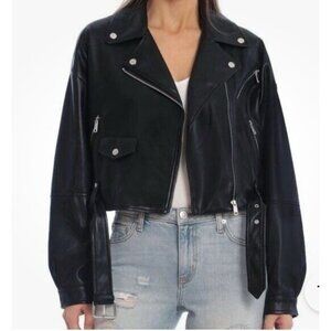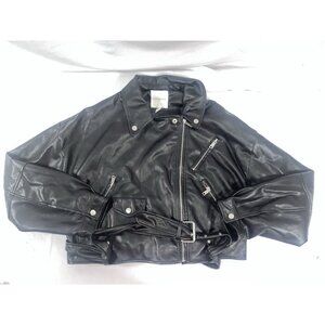 Avec Les Filles Women's Jacket Crop Moto Leather Zip Long Sleeve Black Sz XL