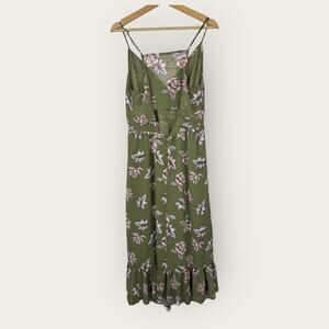 Avec Les Filles Womens Medium Chiffon Open Back Floral Midi Ruffle Dress Boho