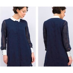 Avec Les Filles Women's Size 10 Blue Eyelet Shirt Shift Mini Dress Preppy Party