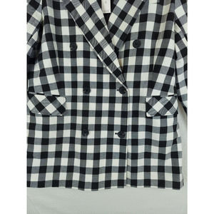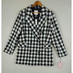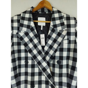 Avec Les Filles Womens XL Black White Plaid Blazer Double Breasted Jacket NWT