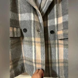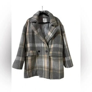 Avec Les Filles Wool Blend Oversized Plaid Peacoat Size Large