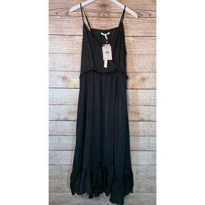 Stand out from the crowd in this simple sundress. Subtle ruffles at the waist and hem add flattering dimension to this surplice midi dress. The silky washed satin moves gracefully as you move. Cut out Peek a boo back. New with tags. Size XL