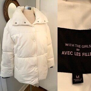Avec Les Filles White Faux Leather Puffer Coat Sz M