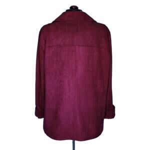 Tags: Jacket, Coat, Shacket, Blazer, Suede, Faux Suede, Boxy, Oversized, Contemporary, Red, Burgundy, Mulberry, Purple, Vegan Leather, Vegan, Long Line