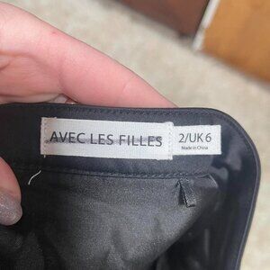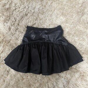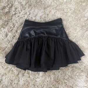 AVEC LES FILLES - FAUX-EVER LEATHER - FLOUNCE MINI SKIRT - size 2 - preloved in great condition only flaw is snag on the inner liner of the skirt, pictured.