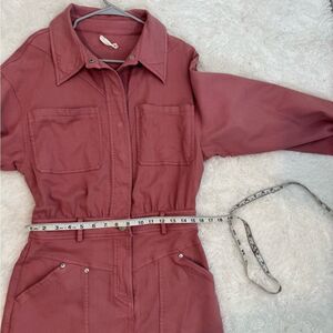 Avec Les Filles Pink Coverall Denim 3/4 Snap Front Patch Pocket Dress Size S