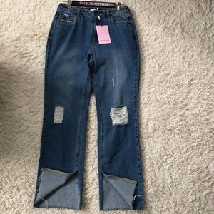 Avec Les Filles High Waisted Distressed Slit Leg Ankle Jeans