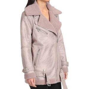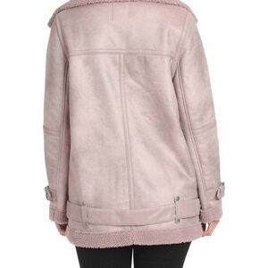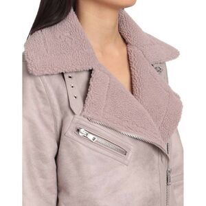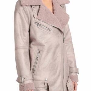 Matte silver hardware and faux leather details elevate the edgy style of our biker-inspired, oversized sherpa