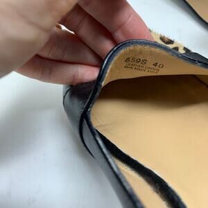 Avellini Black Leather Loafer Pointed Toe Calf Hair Animal Print 40 Made Italy