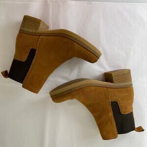 Avellini Suede Chelsea Boots Size 37 or 6.5 Cognac Tan Leather Chunky Heel