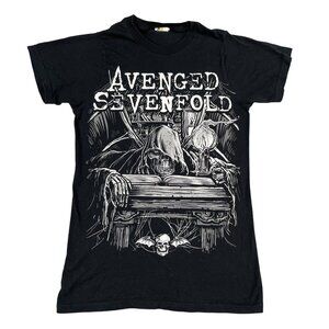 This Avenged Sevenfold t-shirt features a striking reaper scream design, perfect for metal enthusiasts. With its comfortable fit and black color, it's a must-have for any streetwear collection. Ideal for fans of Y2K and metal fashion.