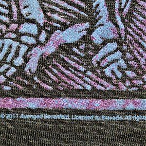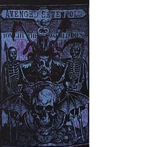 This black T-shirt features a purple and blue front screen inspired by Avenged Sevenfold's "Tonight The World Dies. 100% cotton. Runs bigger like half size.