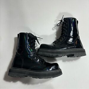Avenger Fortune Work Boots Women 9 Vegan Black Leather Combat Lace Up Safety Toe