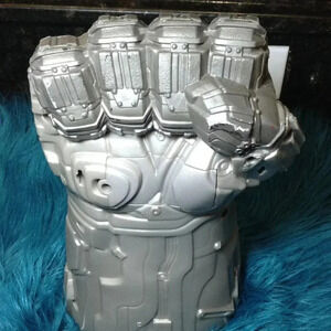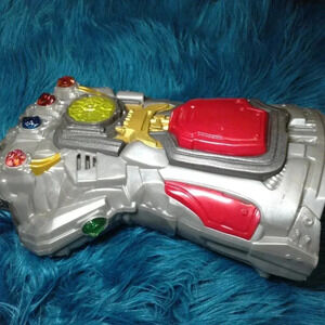 Avengers End Game Grey Infinity War Gauntlet; Cosplay, Fantasy, Childhood, Fun, Kids Play. Works! 2 new batteries included. Lights up when you touch the large gem on the back of the Gauntlet. No visible signs of wear; Looks NEW, gently pre-loved.