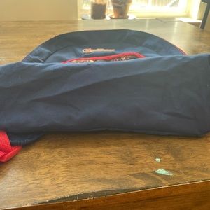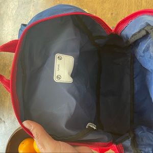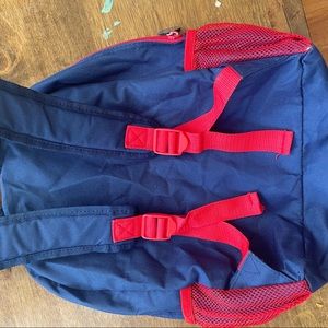 Avengers backpack. Great for a first backpack, as it is on smaller side in my opinion. It measure about 11x14.