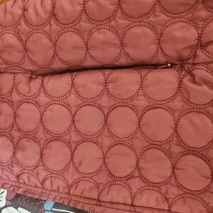 Atypical circular quilted pattern and the beautiful wine color will make you pop in a sea of black padded coats.
