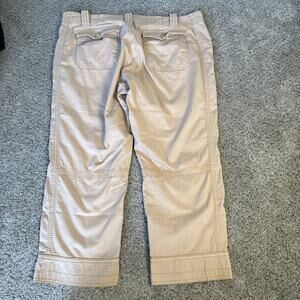 Look stylish and feel comfortable with these Aventura organic cotton crop pants. The solid brown color and ankle style make them perfect for travel, parties, or casual occasions. These pants have a flat front and a low rise, with a waist size of 38 inches and an inseam of 23 inches.