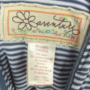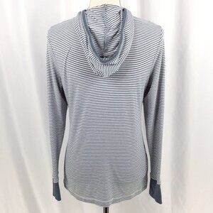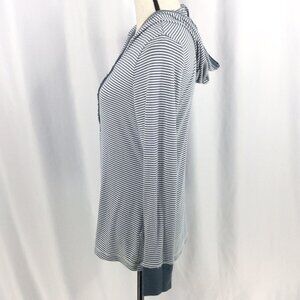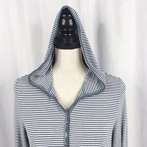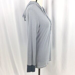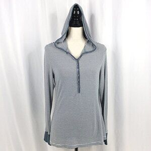 Aventura Hoodie Top Womens Medium Slate Blue Striped Jersey Knit Henley Bamboo