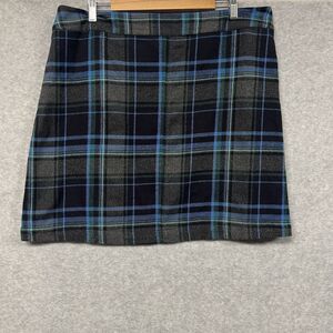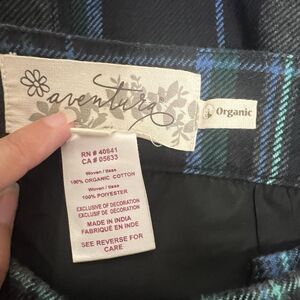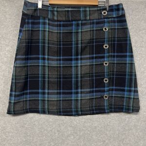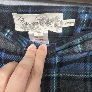 Aventura Organic Cotton Plaid Skirt Blue 14 Button Front Tartan Dark Academia