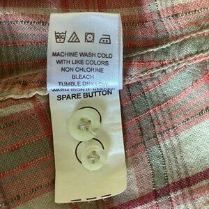 Description: Aventura 100% Organic Cotton Viscose Textured Plaid Button Down Shirt with Contrasting Gray Color Under Collar and Under Cuffs. Two extra buttons sewn on tag inside.