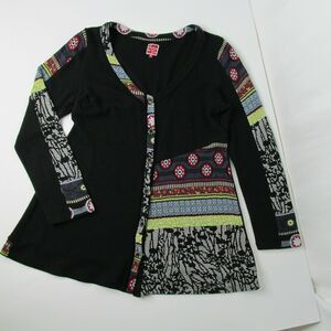 Aventures des Toiles Sweater Button Front Art to Wear Black Long Sleeve Sz 38 8