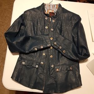 Inside Lining mix of solid Navy & Contemporary Design to match buttons