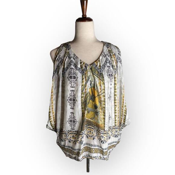 EUC! Sleeveless top with a clock gears pattern. Very drapey and flowy. Made in Tunisia. French 38, US size medium.
