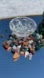 Aventurine Bunny (2”), Small Vintage Crystal Dish, Mini Mushroom & Ocean Jasper Chips. Sweet green Aventurine Bunny sits atop a bed of ocean Jasper in a clear crystal dish. Dish is approx 2.25” diameter at top, .75” height.
