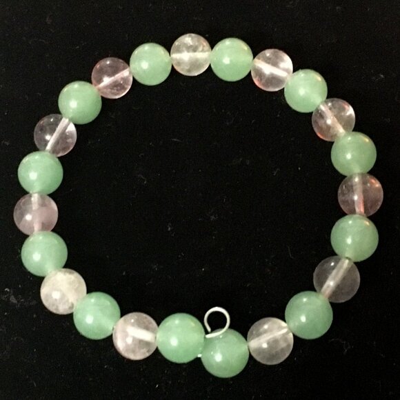 Memory wire with 8mm genuine semi-precious round beads. Green Aventurine & Light Purple Fluorite.