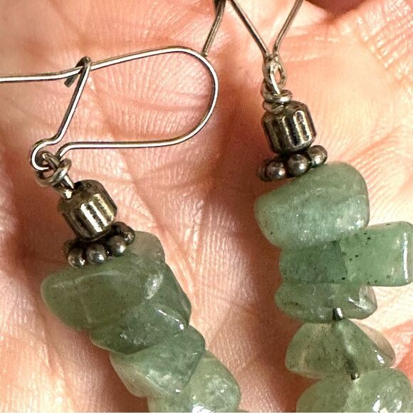 Aventurine silver tone drop earrings