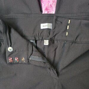 Very Nice black dress/work pants, features zipper & hook closure, and front pockets. Straight leg. Petite length, measures approx 27" inseam. Tag size 18. Fabric is medium weight and stretchy, and seems to be wrinkle resistant as well. Like New Condition.
