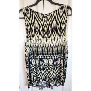 Avenue 18/20 Swing Top Cami Tank Size 1X Yellow Black Sleeveless Relax Fit Rayon