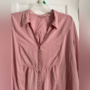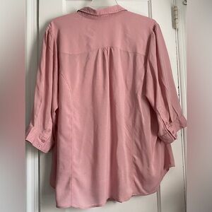 Avenue 3/4 Sleeves Roll Tab Sleeves Button Up Collared Soft Pink Blouse Sz: 3XL