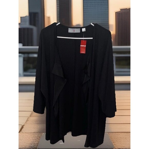 Avenue Black Stretchy Open Cardigan Sweater New with Tag Size 18 Light Weight.