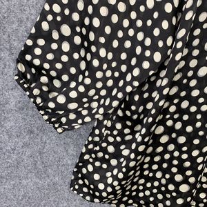 Avenue Black White Polka Dot Top Women 26/28 Button Up Scoop Neck
