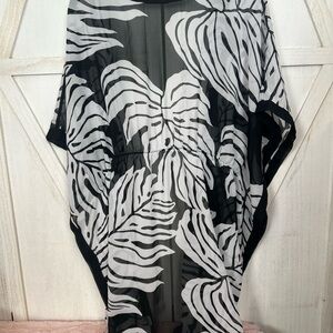 Avenue Women’s Black White Leaf Print Sheer Kimono Cover Up Size 14/16