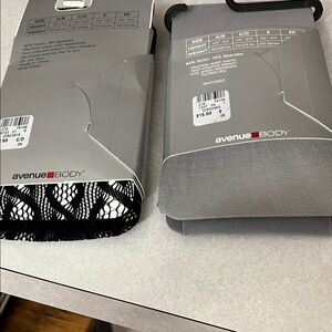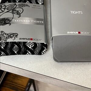 Stylish textured tights. Black and white pattern. Comfortable fit. Gray pair is a size E