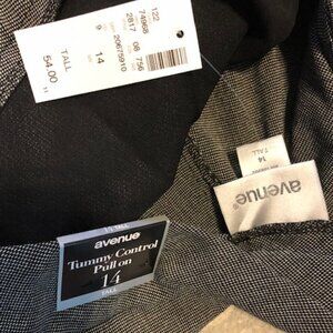 Avenue Black white Pull On Dress Pants 14 Tall Tummy Control tiny checks