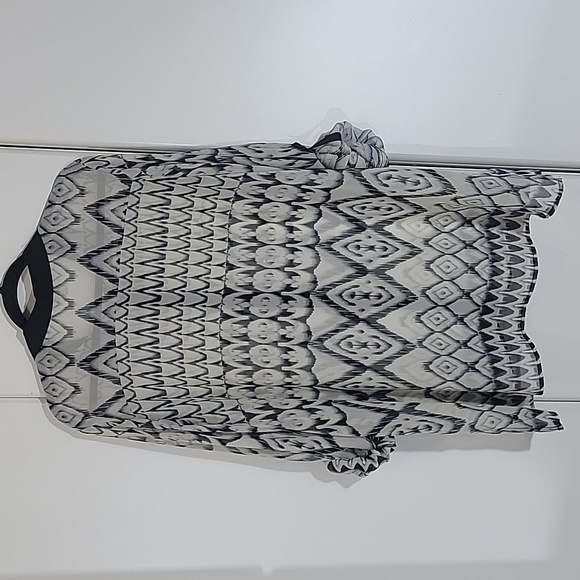 Women's Avenue Black/Cream Geometric Pattern Sheer Collared Blouse 18/20