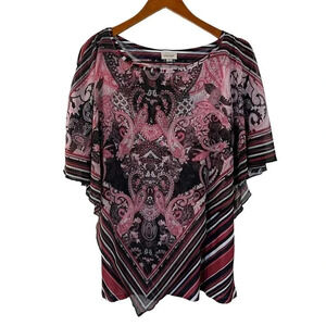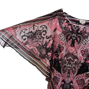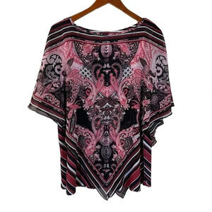 Avenue Blouse Size 14/16 Rhinestone Studded Flared Sleeves Layered Paisley Top