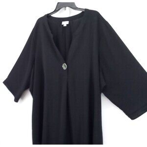 Avenue Blouse Women Plus Size 30/32 Black 3/4 Sleeve Deep Button Accent V Neck
