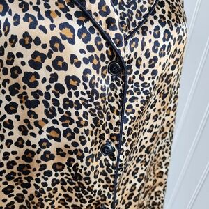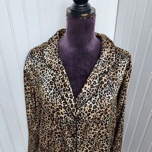Avenue Body Collared Button Down Sleep Shirt Night Pajamas Satin Leopard 18/ 20