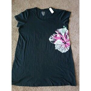 Avenue Body Sleep Shirt Nightgown Size 18/20 Navy Blue With Floral Print Pit to Pit 24" Shoulder to Hem 39" New With Tags