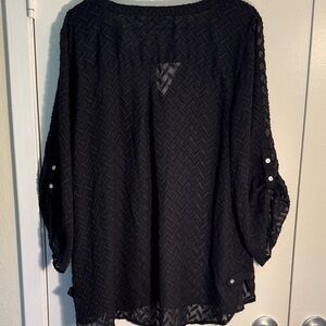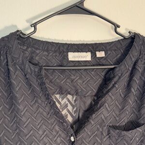 Elegant charcoal blouse with textured chevron design. Button-up style with a chic look.