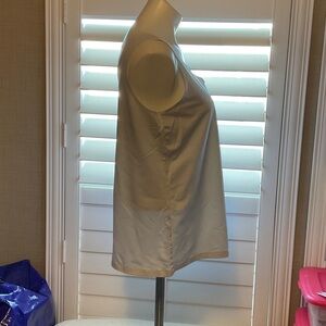 Chic and versatile white tank top. Ideal for layering or wearing alone. Simple and stylish design.