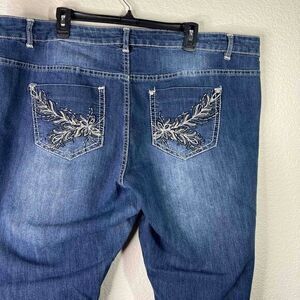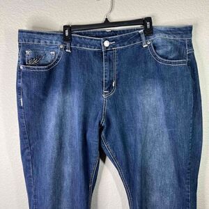 Avenue Denim Blue Wash Distressed Bootcut Jeans Five Pockets Size 24A