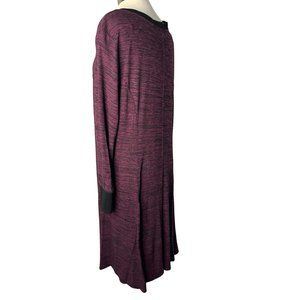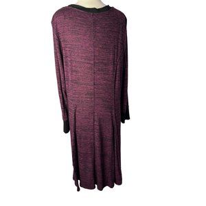 Stylish Heather marbled Avenue dress in purple and black. Features stretchy, long sleeve design with a round neck and midi sheath cut pull over. Made in Vietnam, hand wash only.