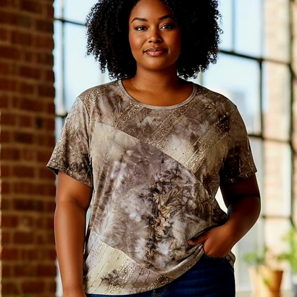 Avenue Earthy Patchwork Short Sleeve Tee 18/20