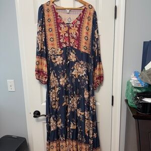 N-Neck, 3/4 Sleeves, Empire Waist, Maxi Length with Tiered Skirt